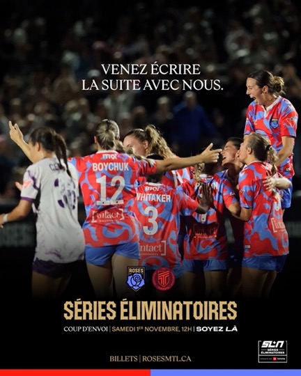 Après une saison inaugurale historique, les Roses de Montréal s’apprêtent à franchir une nouvelle étape en disputant les toutes premières séries éliminatoires de la Super Ligue du Nord (SLN), présentées par Toyota. L’équipe affrontera l’AFC Toronto en demi-finale dans une série aller-retour, avec le match aller prévu le samedi 1er novembre à midi au Stade Boréale.